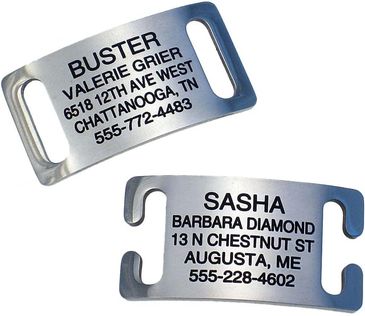 Flat tags attach directly to the collar so they are harder to lose and are quiet.